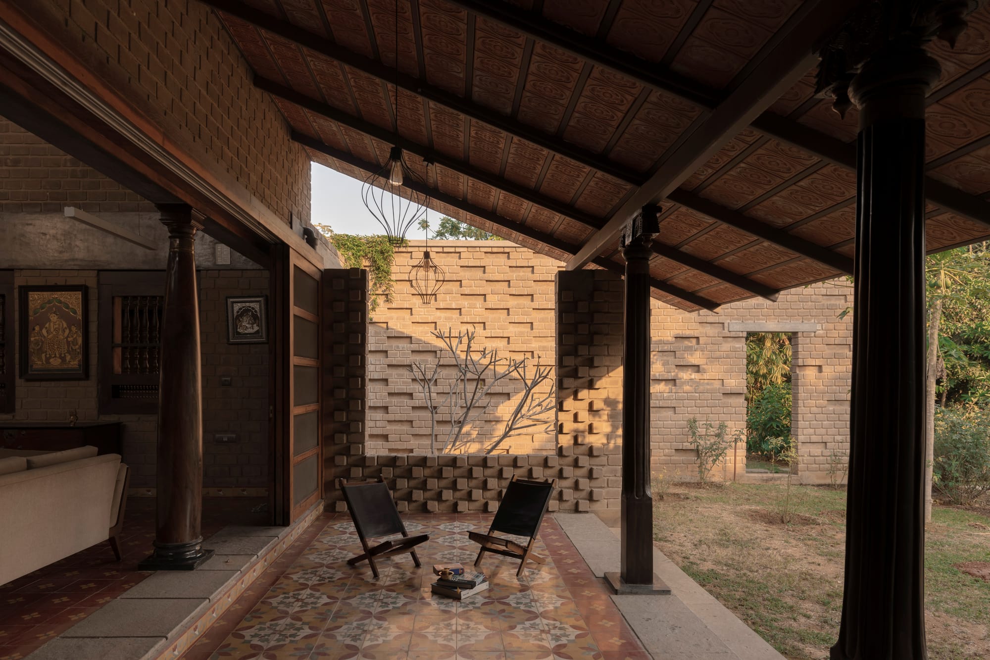 This home embraces the passage of time, allowing light and shadow to animate its walls, courtyards, and verandahs in an endless choreography. “Watching the house rise from the earth was like listening to jazz—the sun playing its licks to perfection,” says Sucheth, “Each experience is both familiar and ever-changing, always perfect yet never the same.”