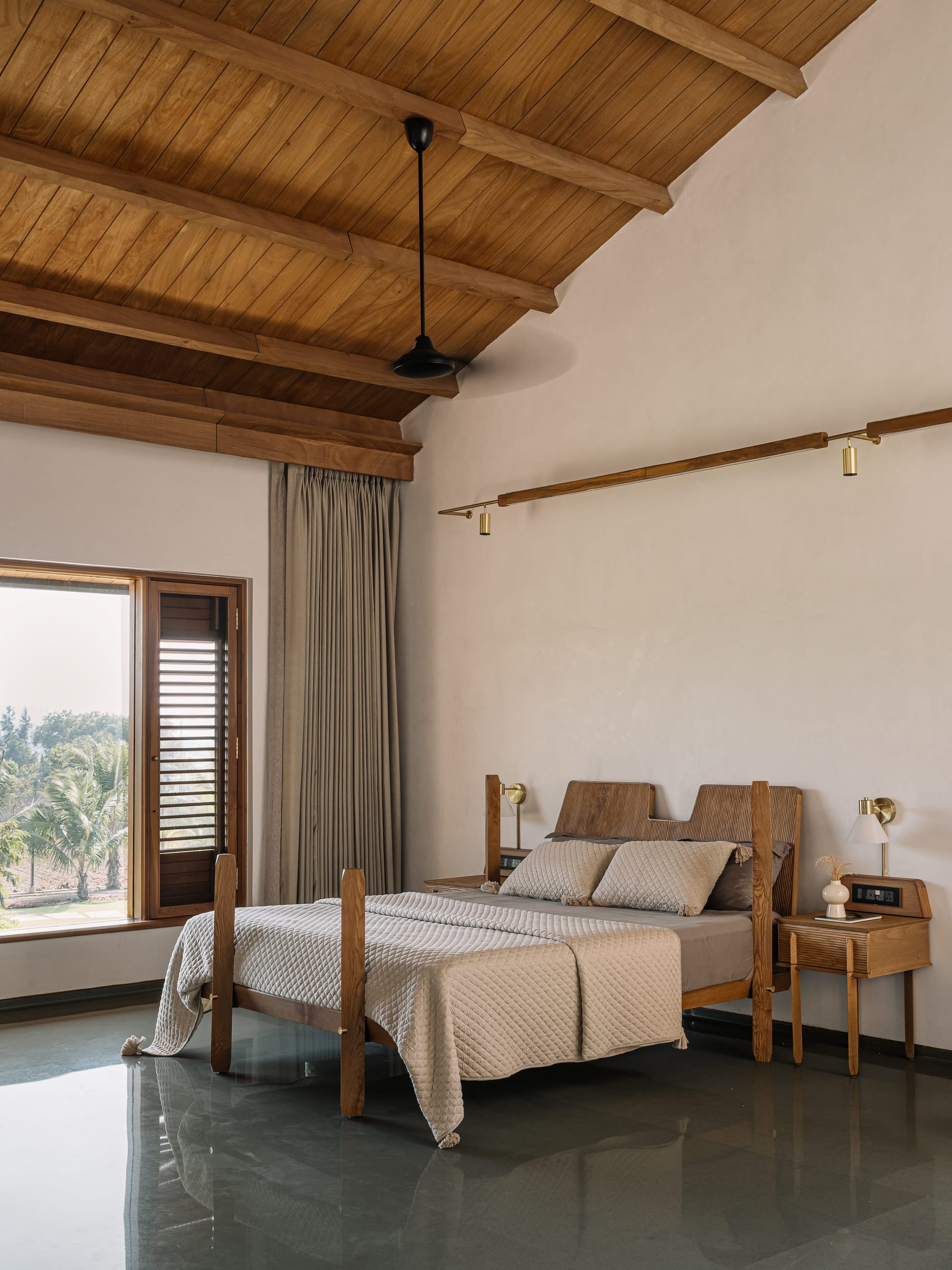 The bedrooms exude a refined sense of calm, each opening into generous en-suites and a private terrace that frames the surrounding greenery in quiet dialogue. At The Retreat Home, the language of nature and the rigour of form coexist with deliberate grace—where raw textures meet gentle tactility, and climatic mindfulness shapes every spatial gesture. In a landscape defined by warmth and languor, the architecture becomes more than a refuge—it becomes a meditation on living well.