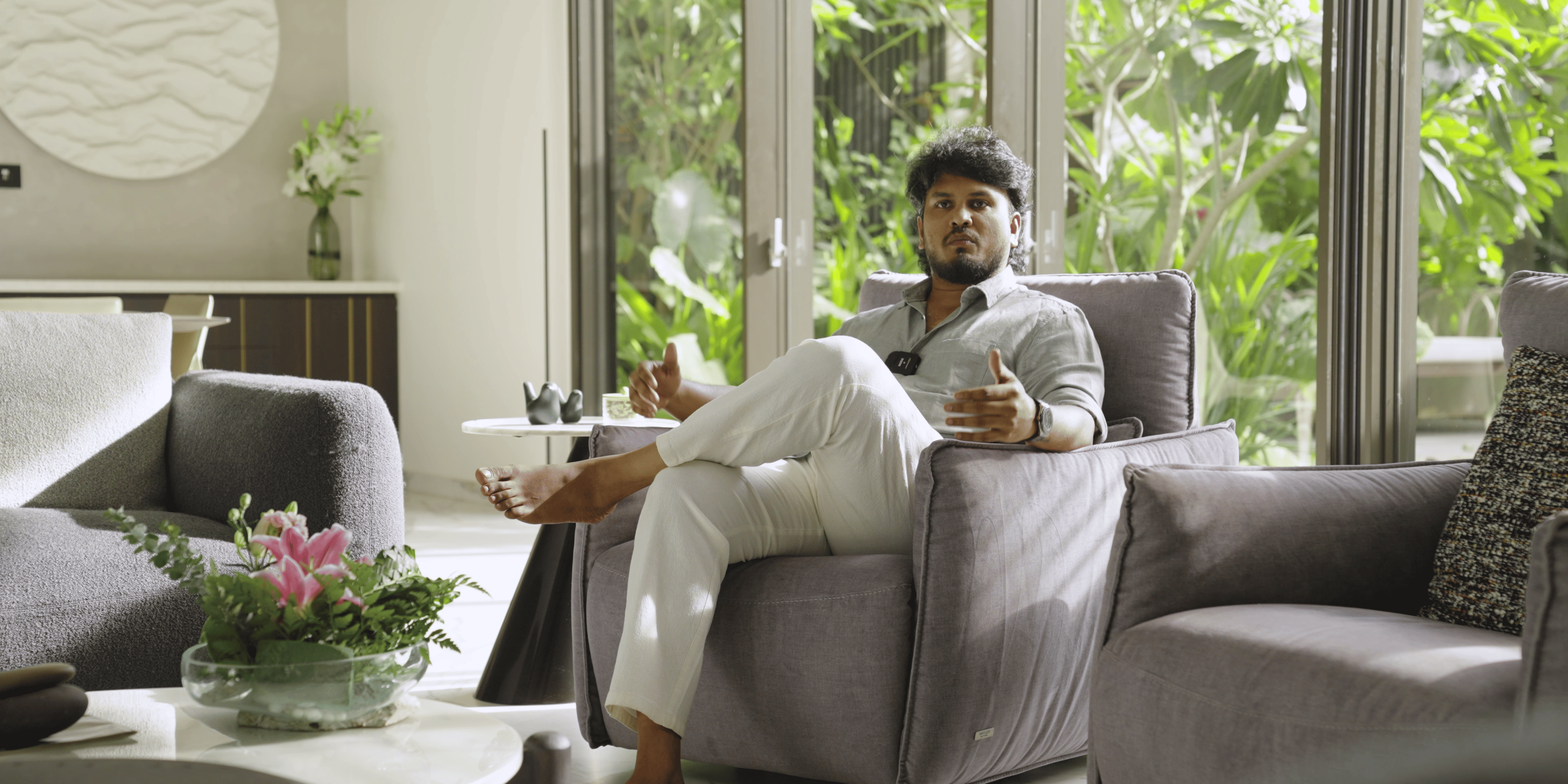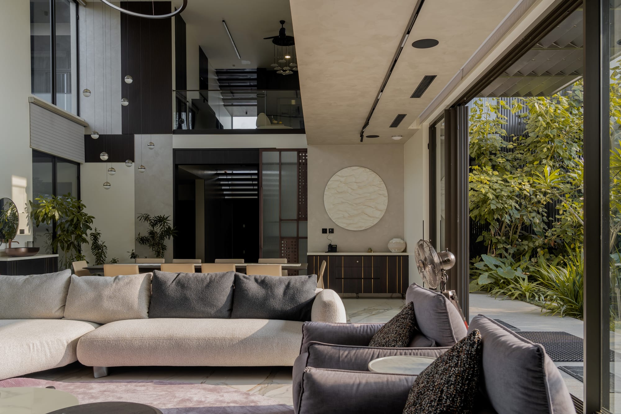Just like the human body, your home also contains an orchestra of tiny timepieces that make up its inner clock. To truly feel like yourself, the spaces you inhabit should fall in lockstep with your circadian rhythms, which is only possible if the natural elements can be guided to wake up the built form at the same time as the homeowners. “From the very first discussion we had with the client,” recalls principal architect Pradeep Arumugam, “we learned that he wanted a double-height core space, which combined the dining and living areas together.” Much of the walls had been left open, and while the structure and its bones stood complete, the client remained hesitant about so many apertures leading into the interiors. Yet once the landscaping took shape, the hesitation vanished, and the house settled into its own cadence, breathing fresh life into itself and syncing with the daily rituals of those within. This five-bedroom residence in Tamil Nadu, aptly named Veiled Volumes, re-wires its own tempo with almost biological precision.